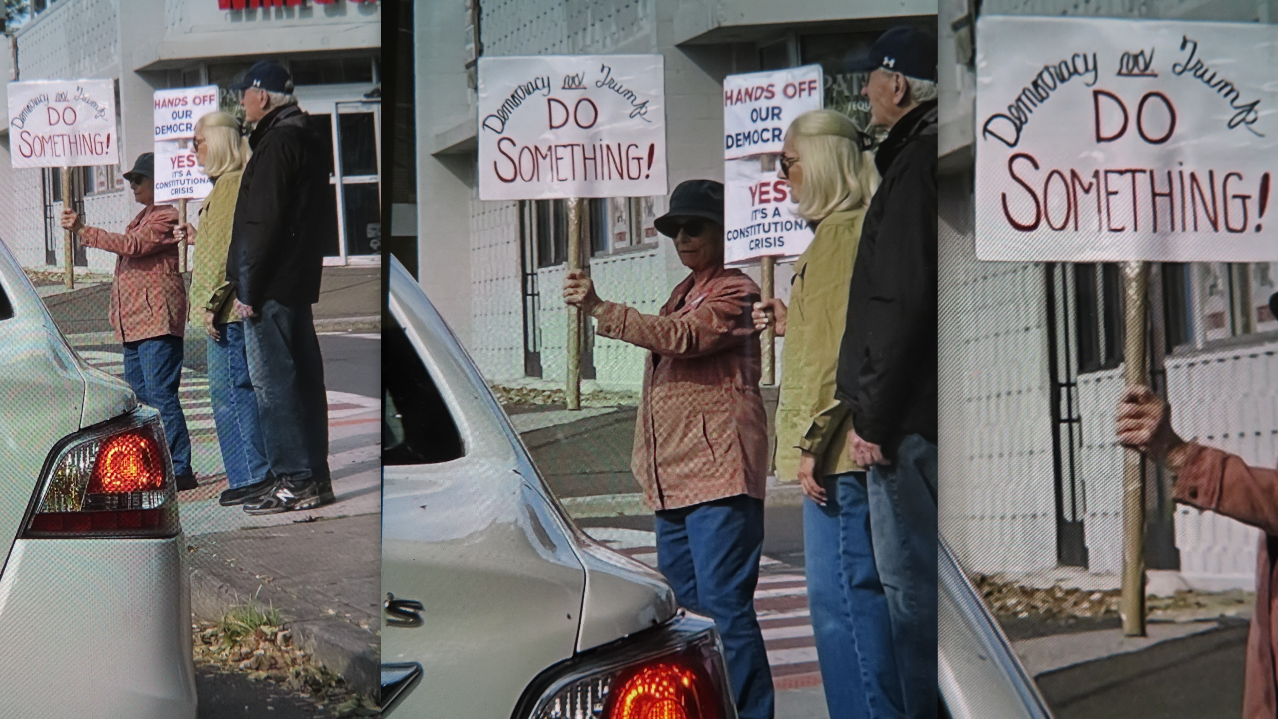 …………………On my way around town today….doing my many chores before I leave for Europe……I saw AMERICAN CITIZENS on their way to the “NO KINGS RALLY”…….The “right” says they are un-American, and terrorists! Do they look like terrorists to you???……..They are NOT….They are simply everyday Americans expressing their rights to PROTEST against the tyrant and his cronies who are running this country into the ground, and are trying with every avenue, many illegal, so they can to destroy our DEMOCRACY! If you don’t see this to be true….you’re just not looking!……..MILLIONS are expected to march across AMERICA, and over seas!……….DO SOMETHING!!!!!